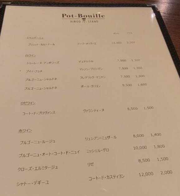 와인은 한잔에 대략 2천엔 선.. 병으로는 1만에서 1.4만엔까지..