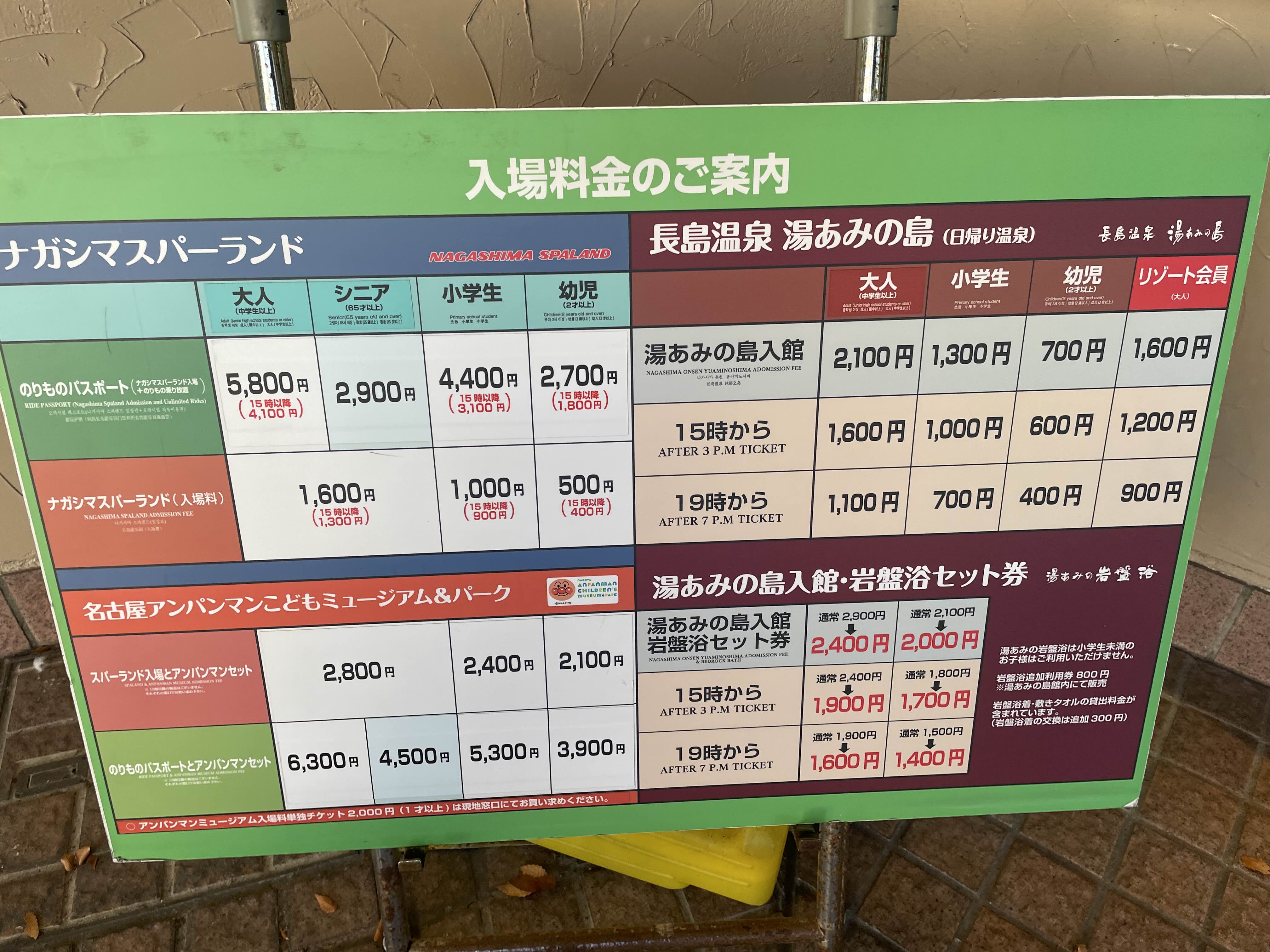 가격은 놀이공원과 온천이랑 다 따로 형성되어있는데