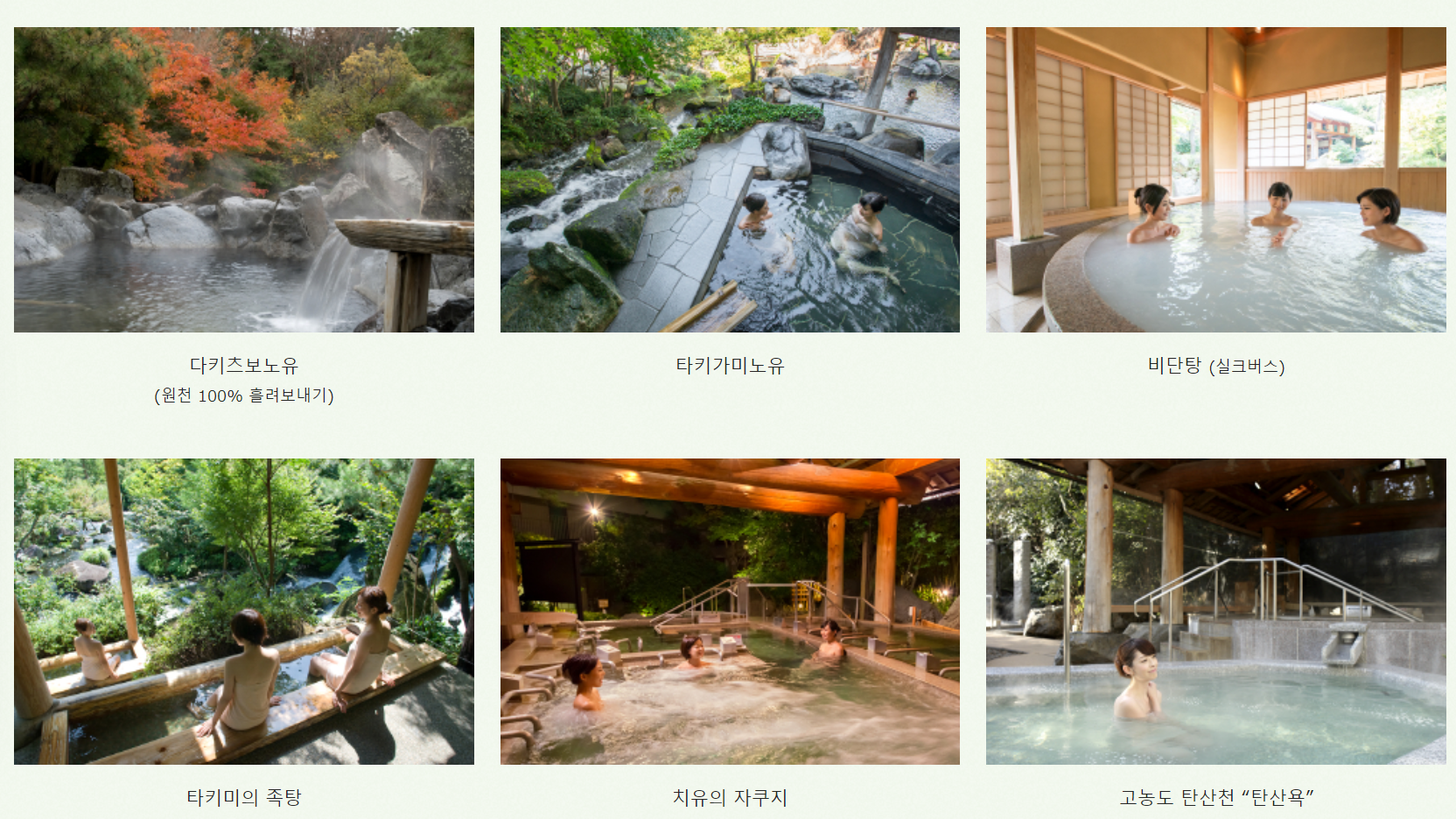 아래 사진처럼 노천탕의 종류가 어마어마하다