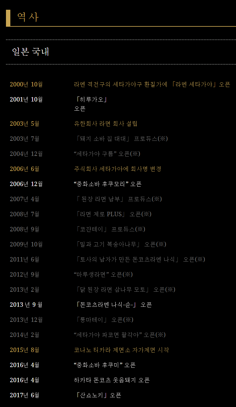 2000년에 '라멘세타가야', 다음 해에는 '히루가오'를 오픈했습니다.