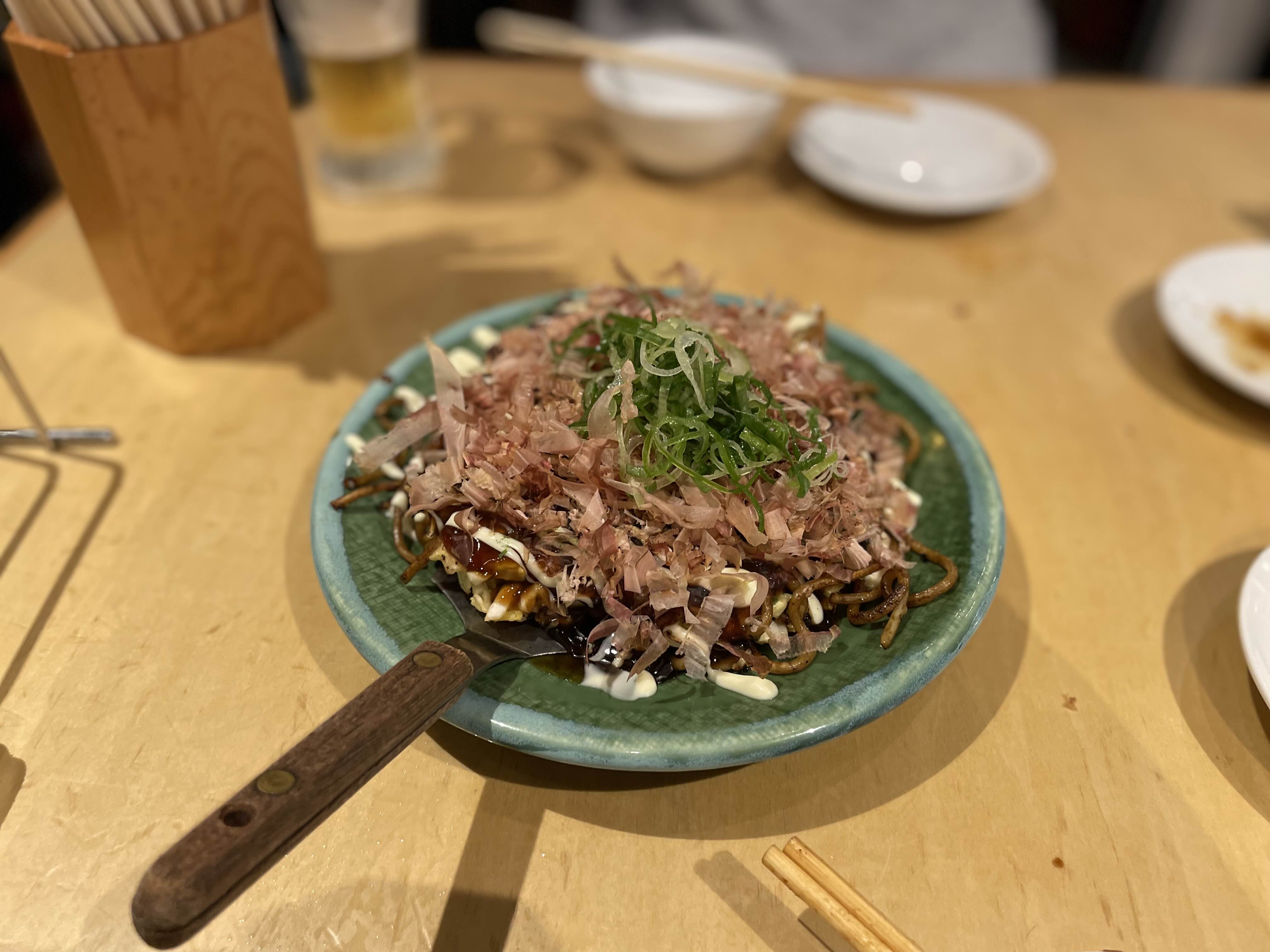 이건 오코노미야키인데 야키소바도 적절하게 섞여있었다