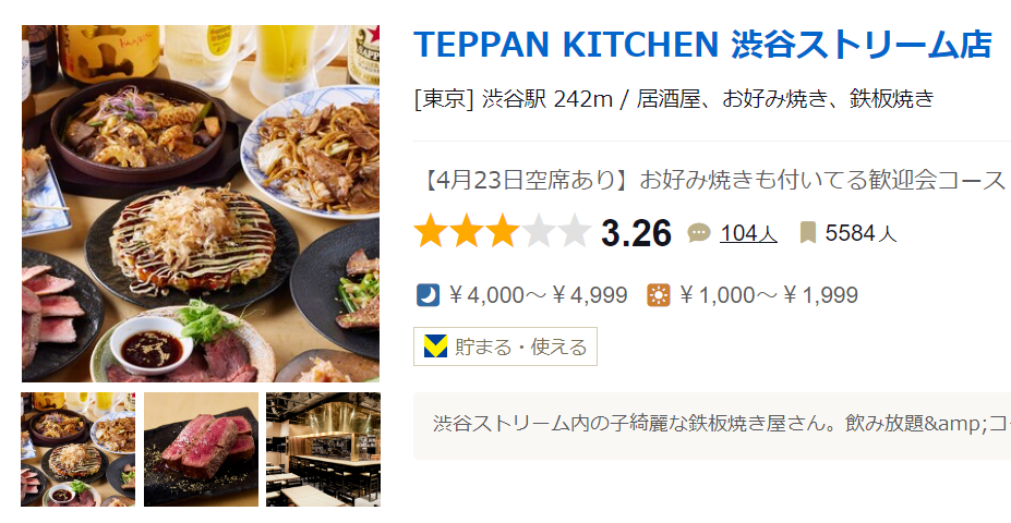 ★★★☆☆3.26 ■【4月23日空席あり】お好み焼きも付いてる歓迎会コース ご予約受付中/渋谷ストリーム3F ■予算(夜):¥4,000~¥4,999