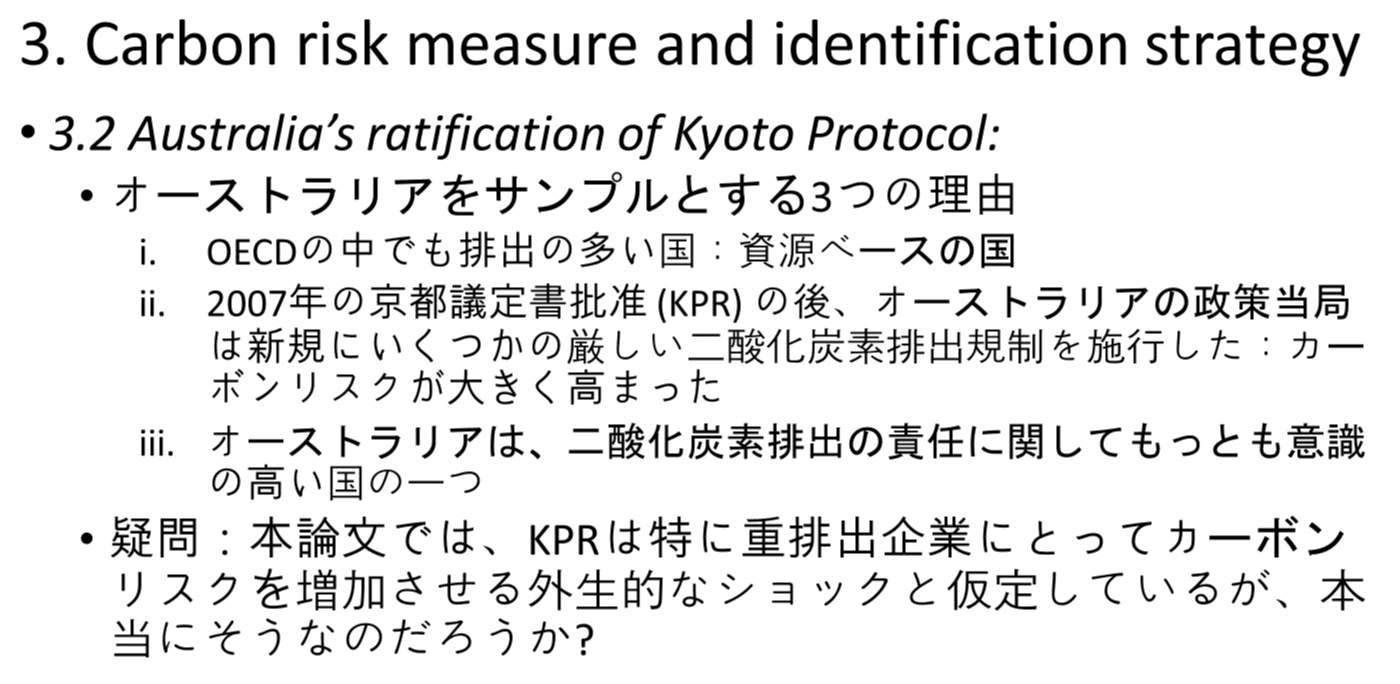 - 질문: 이 논문에서는 KPR이 특히 배출량이 많은 기업에 대해 탄소 위험을 증가시키는 외생적 충격으로 가정하고 있지만, 정말 그럴까요?