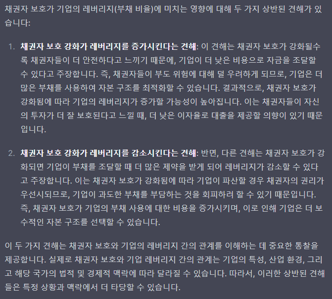 - 채권자의 법적 보호가 기업의 자본 구성에 미치는 영향