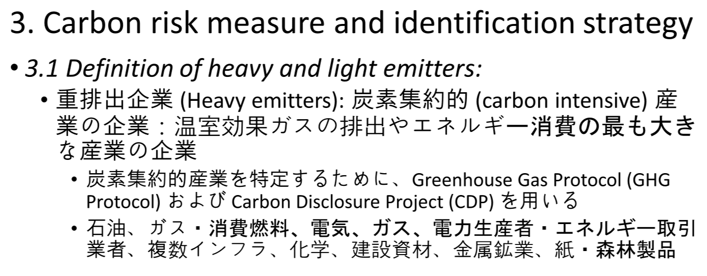 - 그러나 탄소 위험이 기업의 재무 정책에 어떤 영향을 미치는지, 그리고 그 영향이 어떠한지에 대해서는 충분한 연구가 이루어지지 않았다.