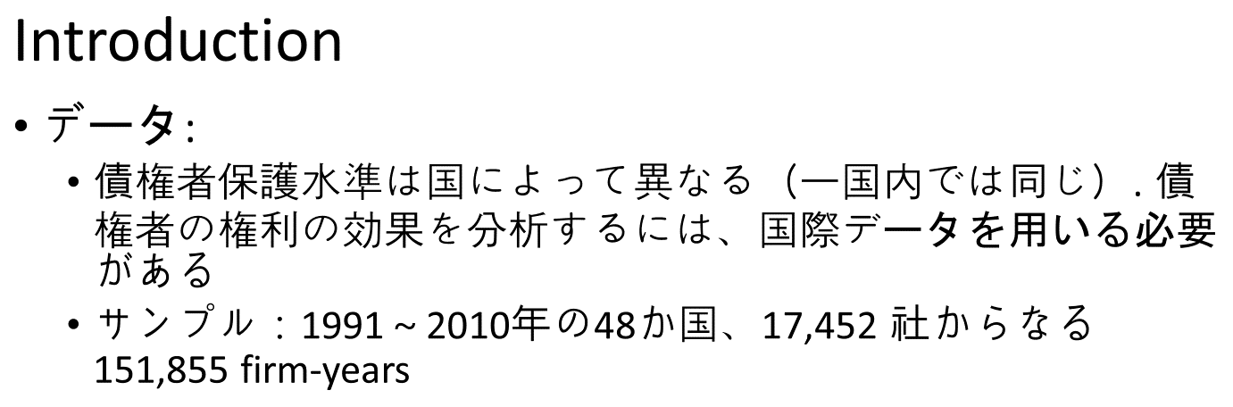 - 이 논문에서는 자본 구성의 결정 요인으로서 채권자의 법적 보호에 주목