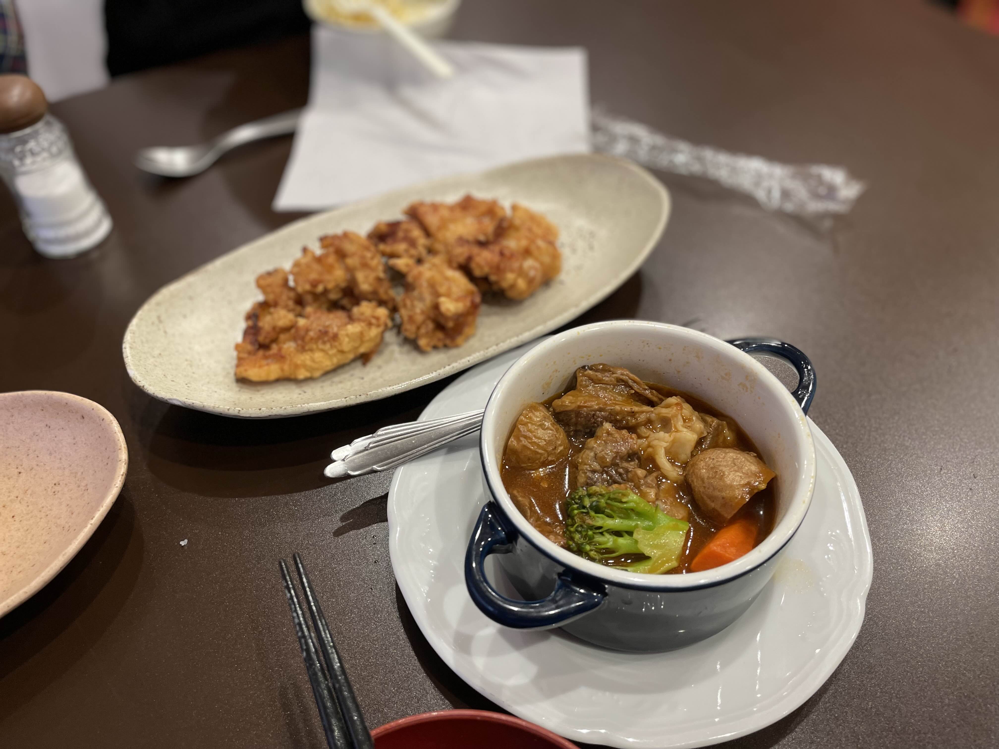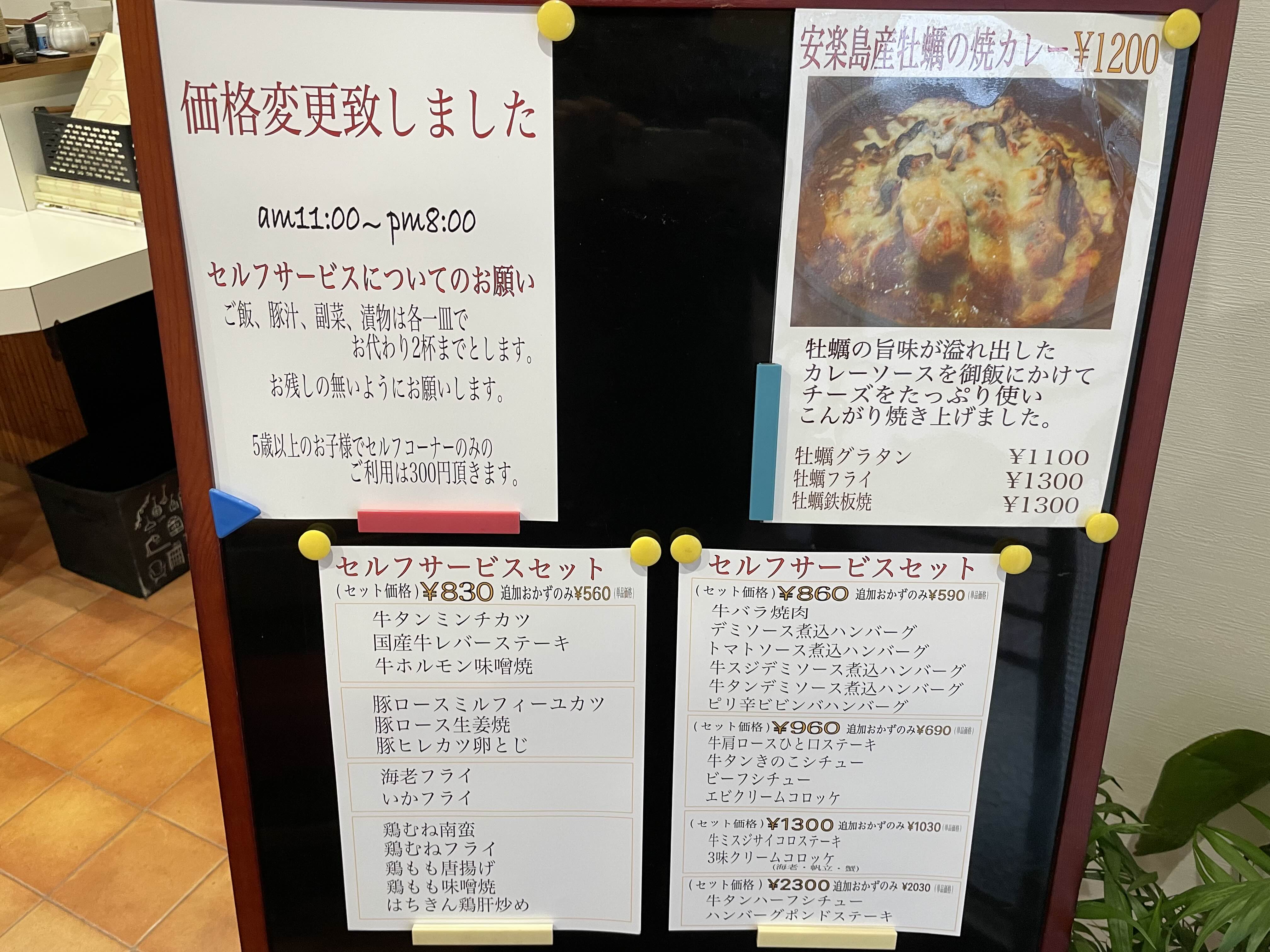 셀프 서비스가 기본인데 메인디시는 가져다주고 그 외에 밥, 국, 야채, 반찬 등은 총 2번까지 오카와리가 된다고 한다.