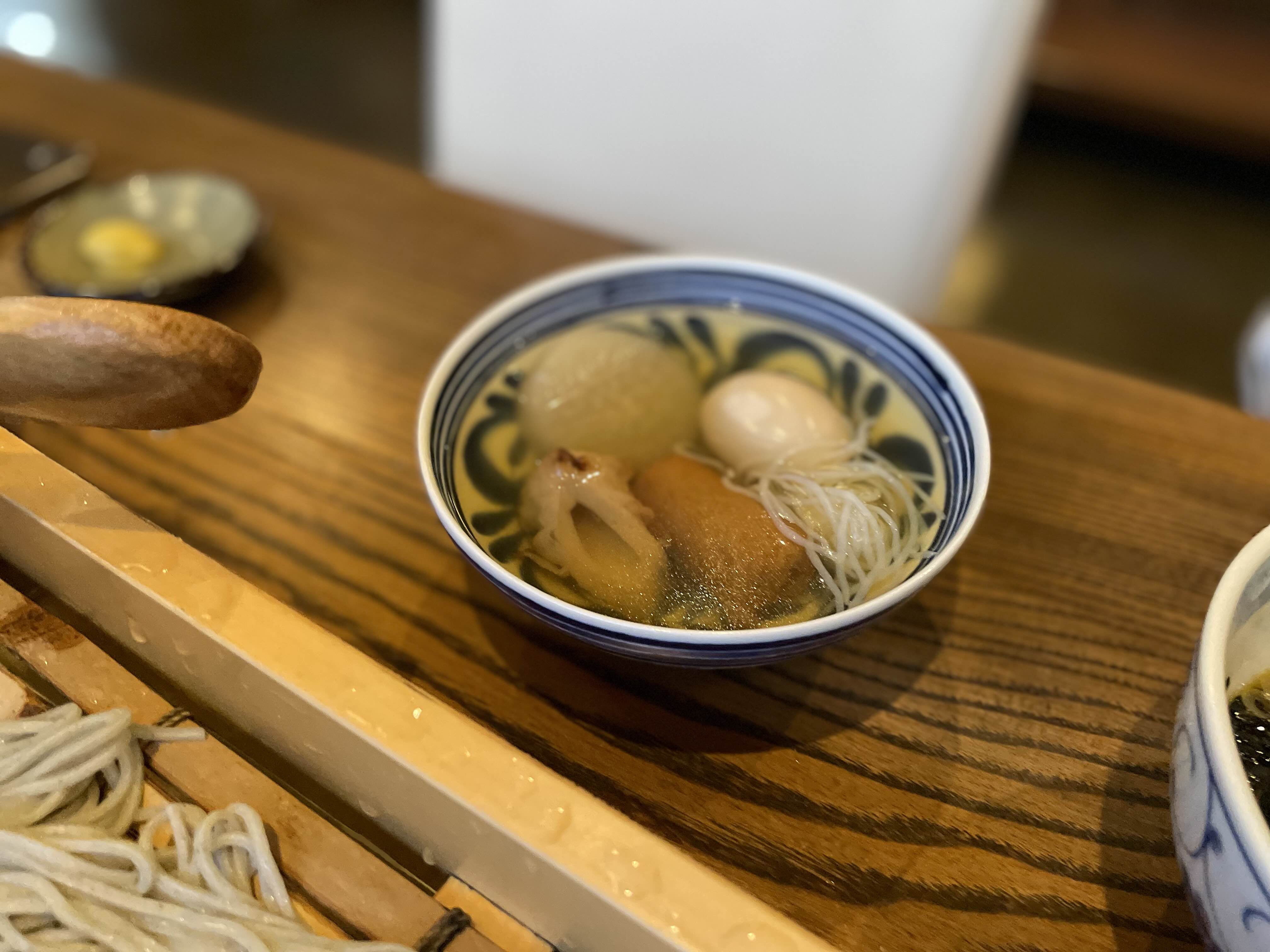 이 소바를 '헤기'라는 그릇에 한 입 크기로 나란히 배열하여 담은 것을 '헤기소바'라고 합니다.