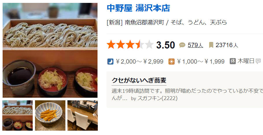 쇼츠영상은 아래 참고구글 평점 1,200개... 평점 4점.. 엄청나다.. Kagimotoya · 3041-1 Nagakura, Karuizawa, Kitasaku District, Nagano 389-0111 일본★★★★☆ · 소바 전문점www.google.com타베로그도 3.49점으로 꽤나