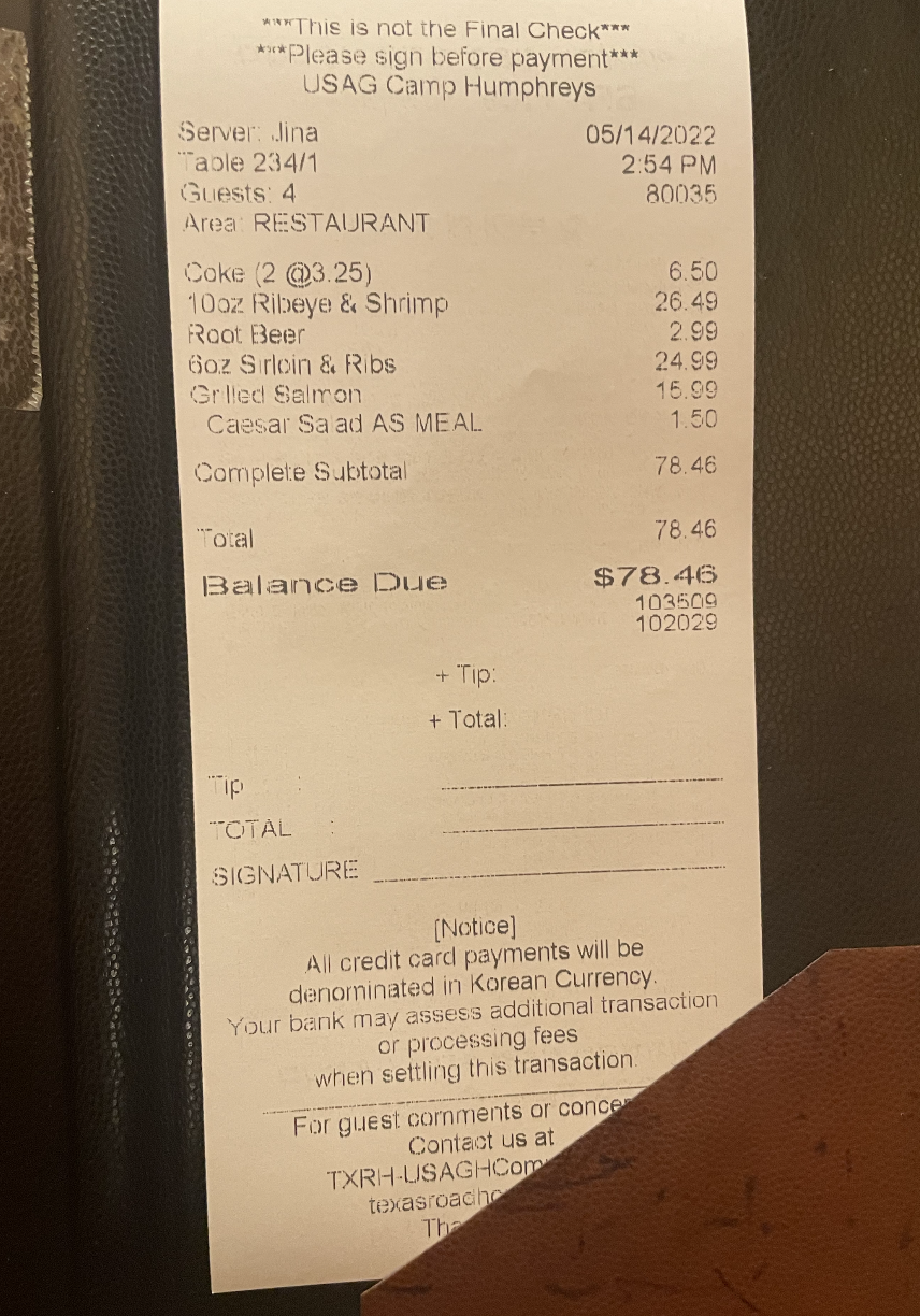 내가 잘 모르는 걸 수도 있는데 평택 미군부대에 유일한 큰 식당은 텍사스 로드하우스라고 한다.