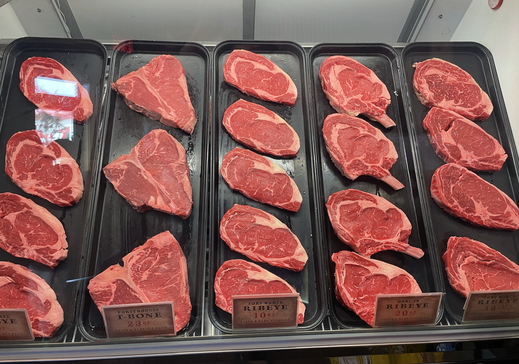 스테이크 2개에 연어스테이크 1개 시켰다.