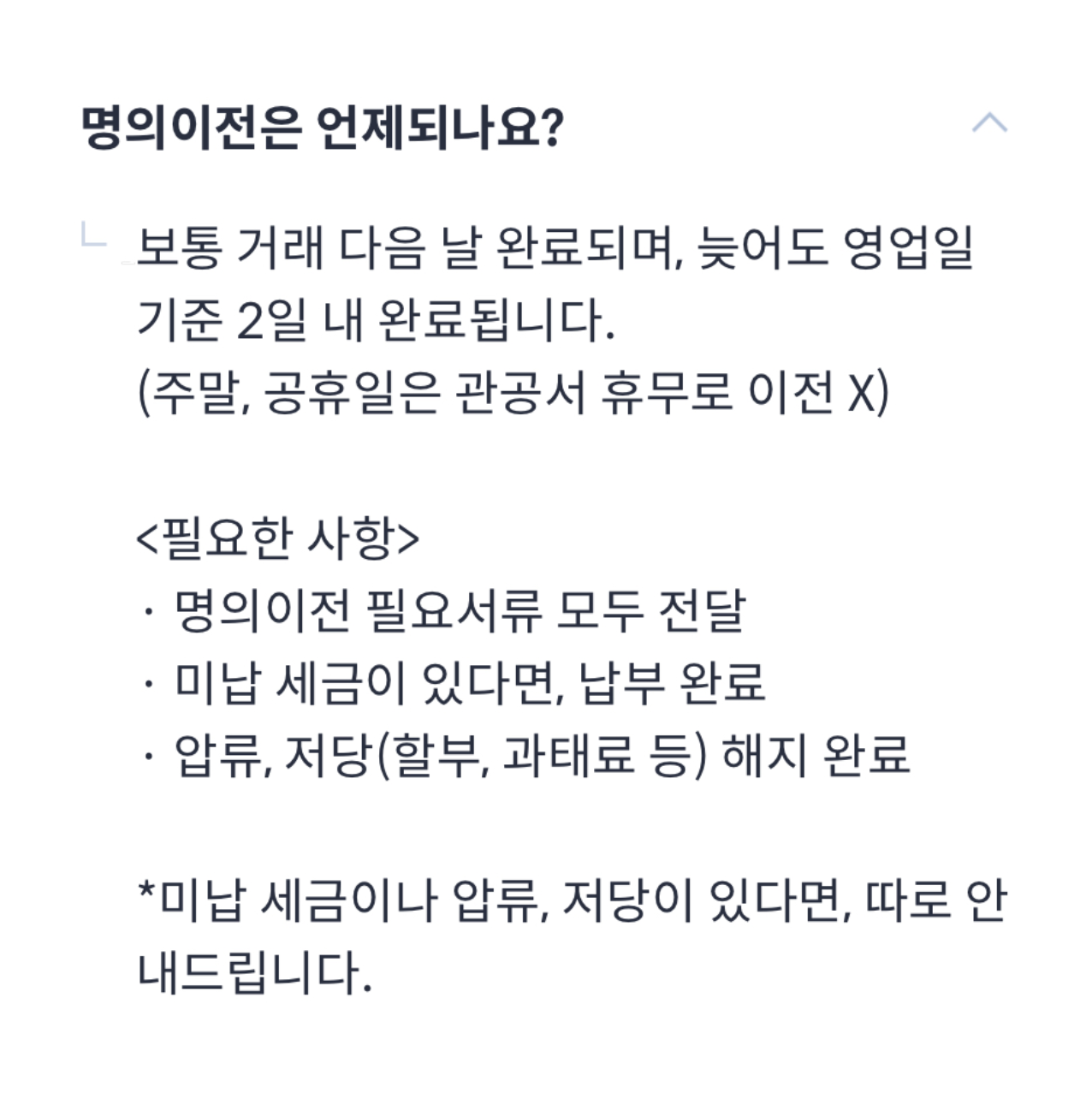 이 과정에서 내가 궁금했던 건 나처럼 급하게 차를 팔아야하는 사람은 스케쥴이 어떻게 되는가 하는 부분이다.
