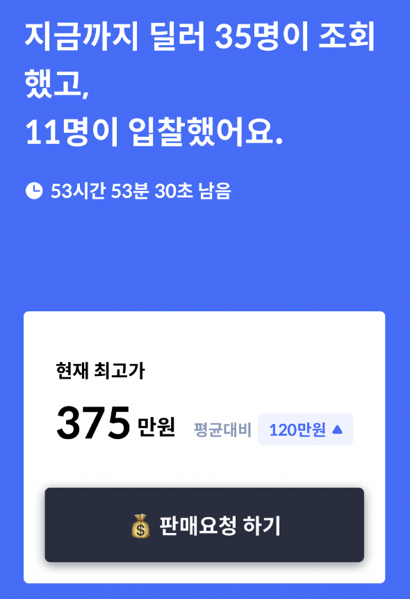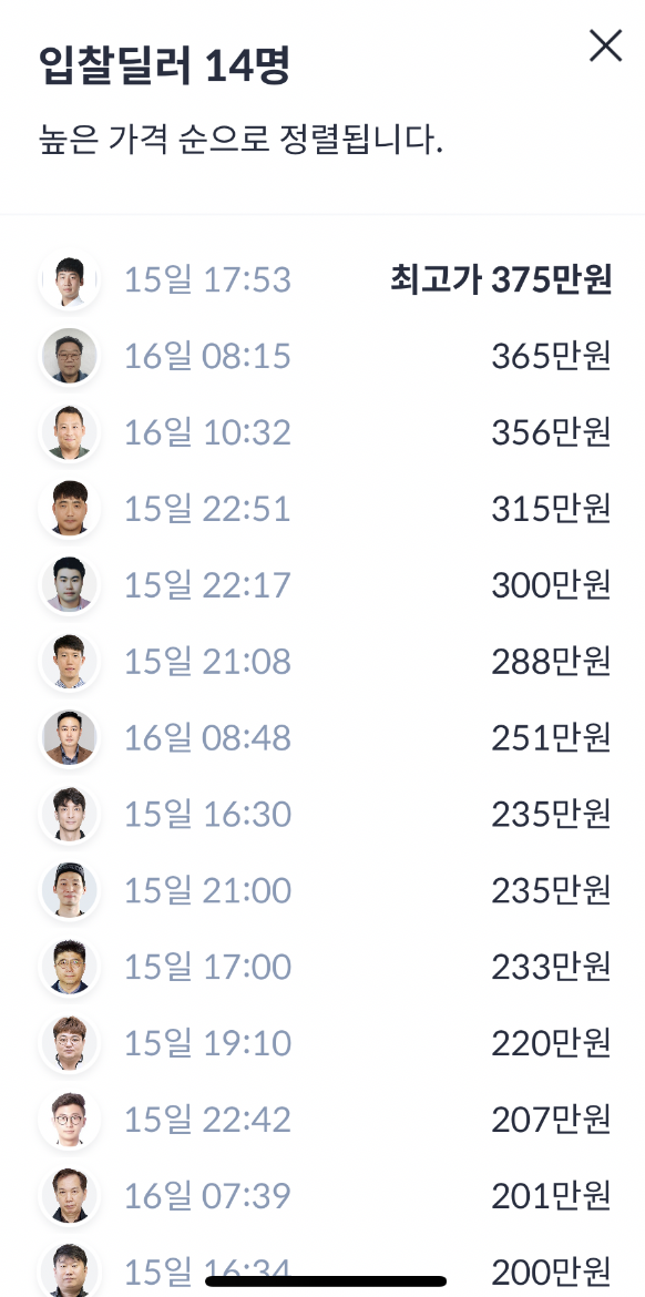 근데 입찰 내역을 보면 15일부터 경매가 시작되었는데 15일에 입찰하신 분이 최고가였고 하루 정도 받아보았는데 더 높은 금액은 없어보여서 그냥 그 가격으로 판매했다.