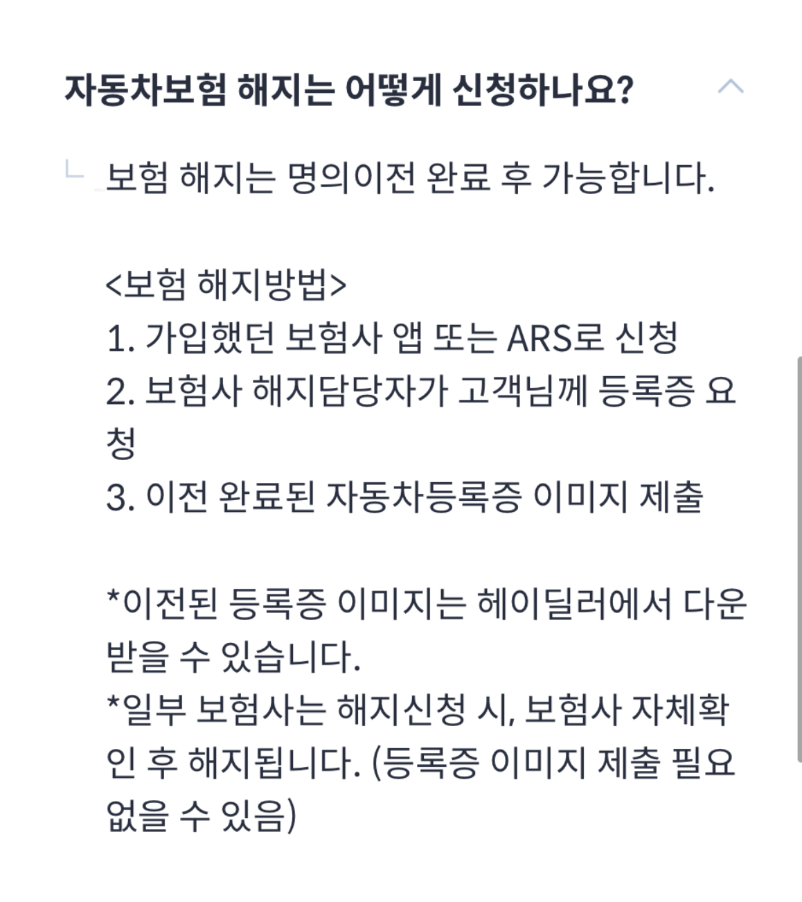 이후는 헤이딜러에서 보내주는 명의 이전된 자동차등록증으로 보험을 해지하고, 계기판 사진을 통해 마일리지 환급받으면 된다.