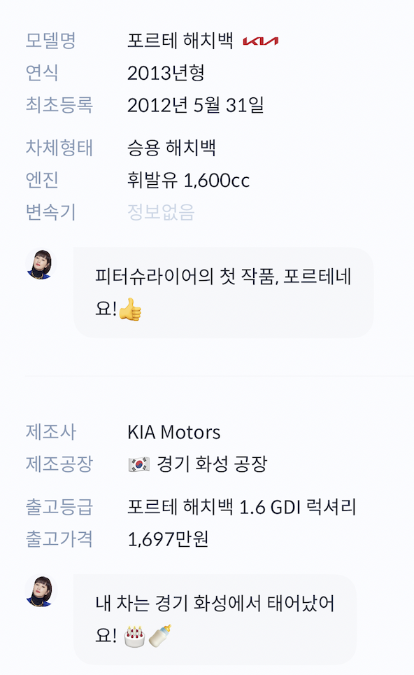 특히 본인 차량 정보도 대화하듯이 보여주는 점이 인상적이었다.