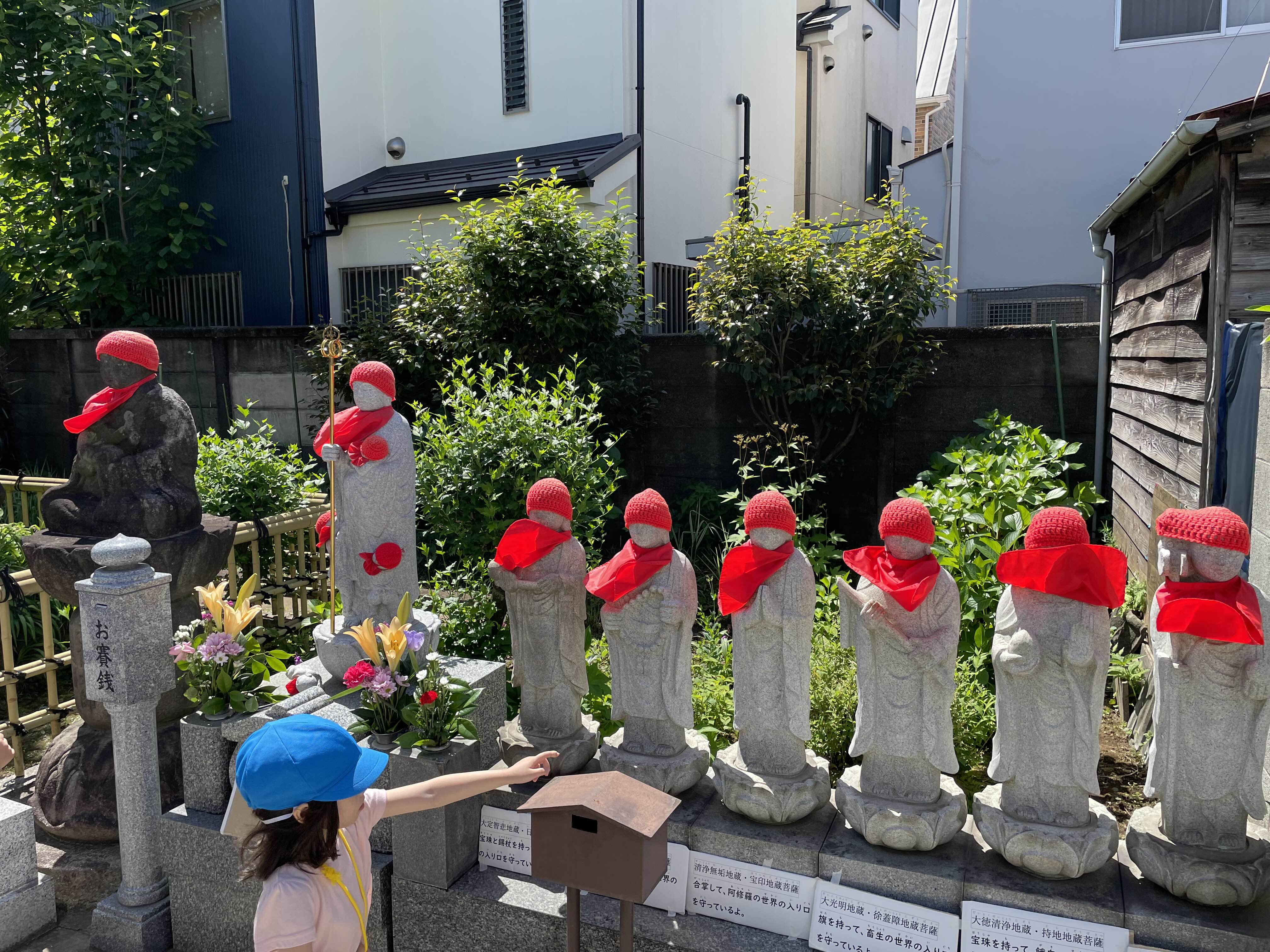 어린이와 앞치마(침받이)를 하고 있는 것은, 지장보살이 수많은 순교자들을 구하는 역할이 있기 때문이라고 합니다.