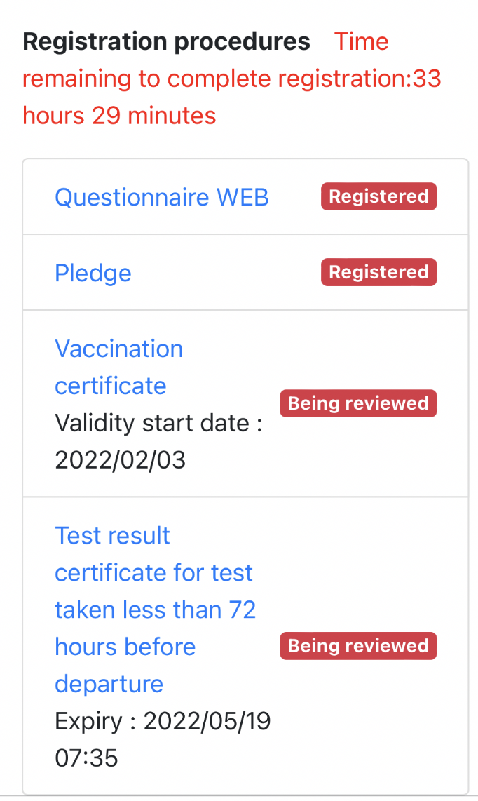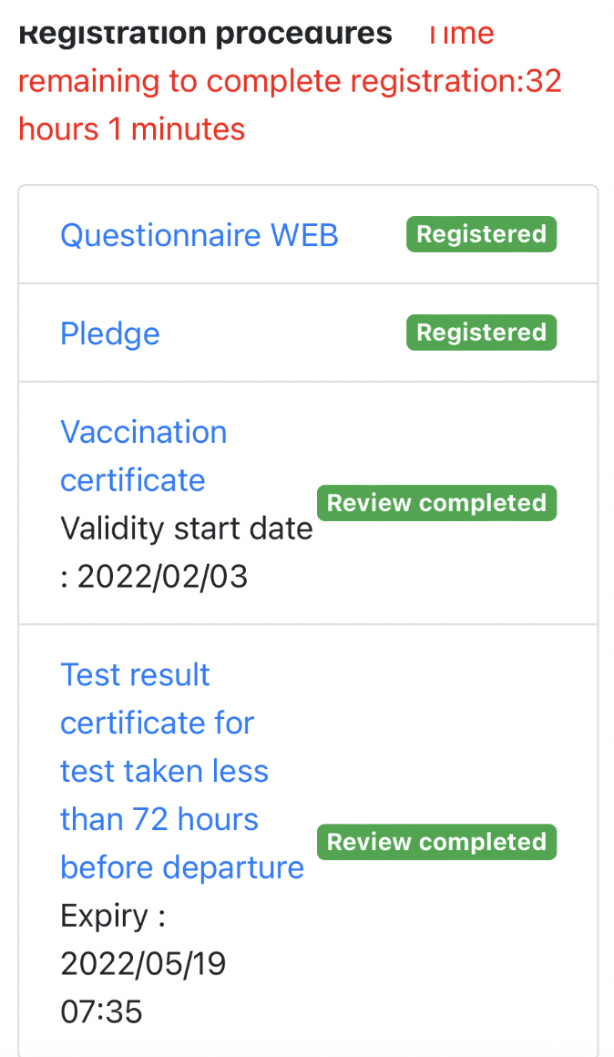 - 백신접종증명서 (3차만 인정, 2차까지는 미접종자 취급)