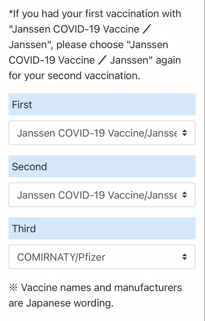 * If you had your first vaccination with "Janssen", please choose "Janssen" again for your second vaccination.