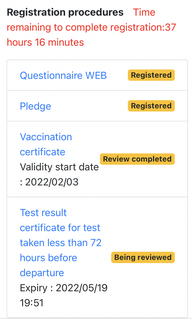 상단에 잔여 시간이 계속 나온다. 저 시간(출국 16시간 전) 안에 제출을 완료해야지 인정 받을 수 있다.