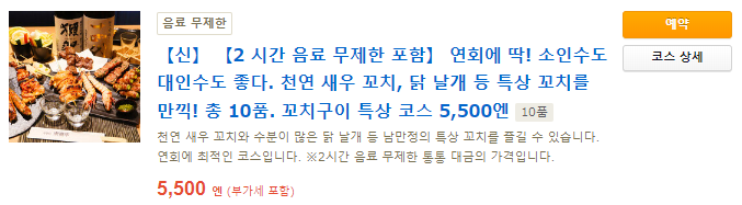 회사 지원금이 5,500엔까지라서 이 코스로 예약한 것 같다