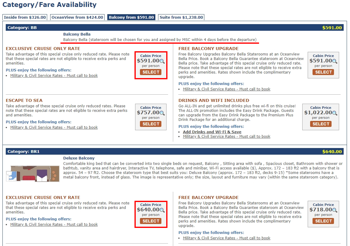 그리고 MSC공홈에서는 USA로 국가를 설정하면 가격은 나왔지만..