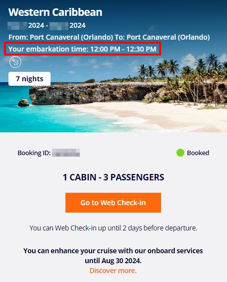 embarkation time 탑승시간은 12시로 되어있다