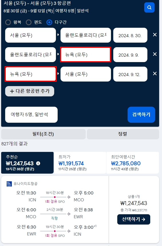 우왕 네이버에서도 뉴욕 경유해서 오는데 117만원이다! 굳딜이다