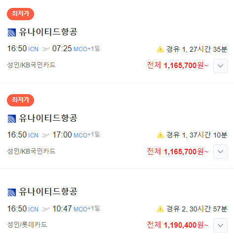 뭐 그럭저럭 어쩌다보니 올랜도 가는게 항공편이 저렴했다 120만원..