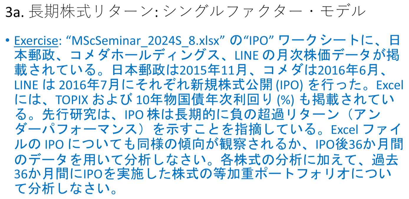 - 연습 문제: Brav et al. (2000)은 공모 증자를 실시한 기업의 장기 주식 수익률을 분석하고 있다.