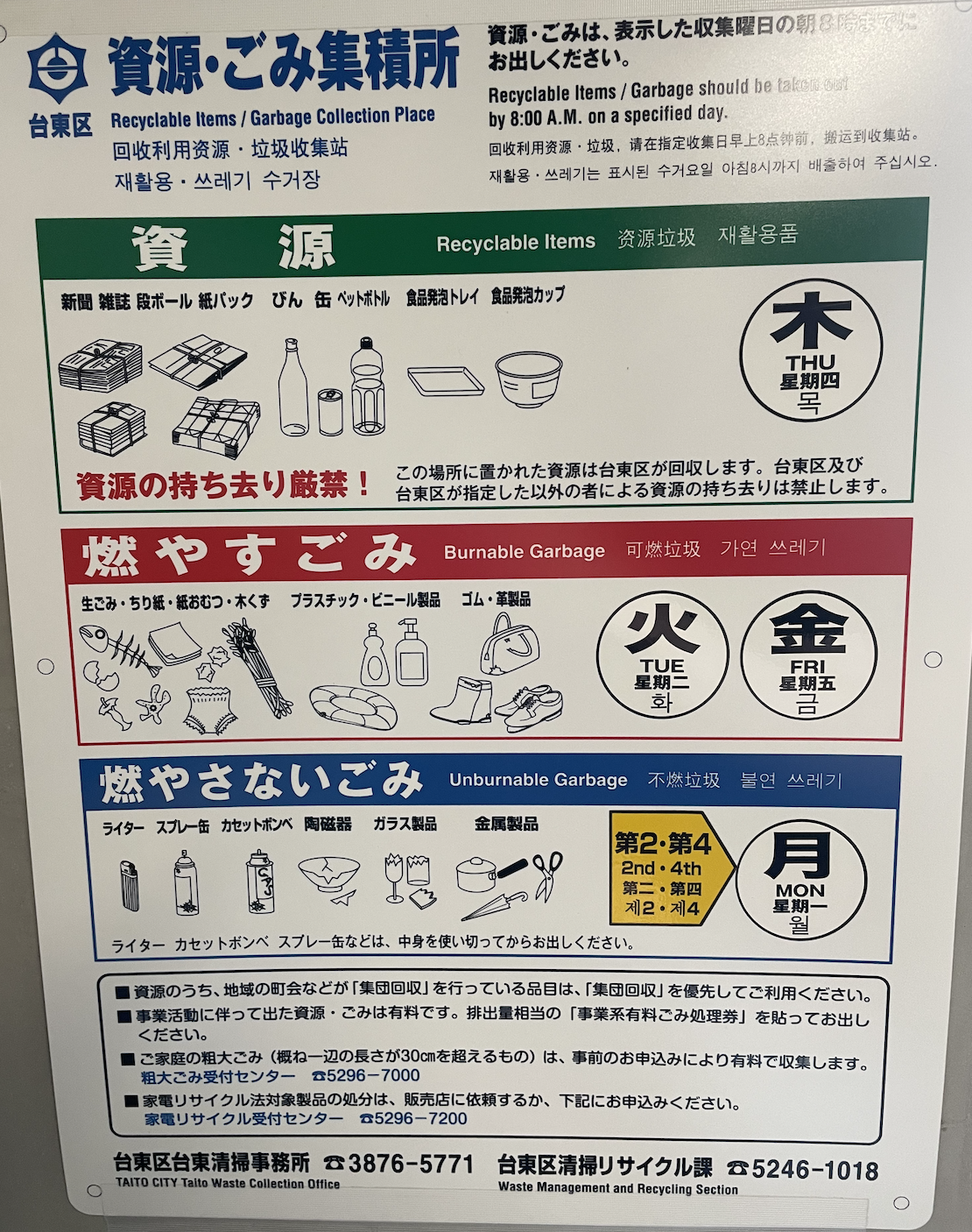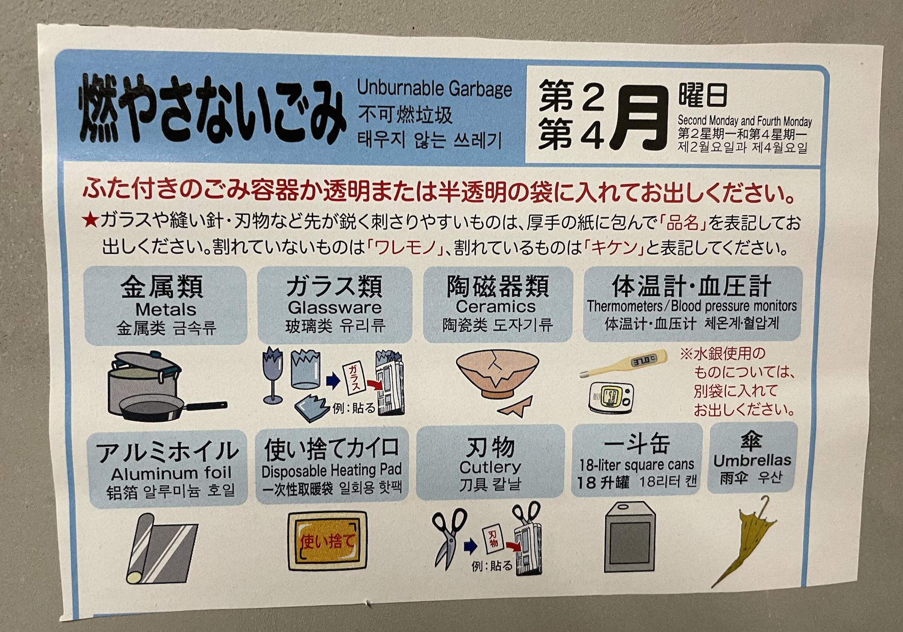 한국에서 분리수거 마스터로 살고 있었기에 일본에 와서 쓰레기 배출부터 열심히 살펴보았다.