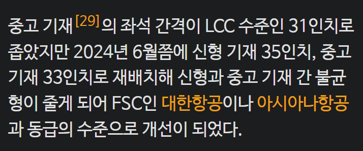 일반 LCC 노선의 좌석간격이 보통 28인치 정도 된다 대충 70cm 초반인데