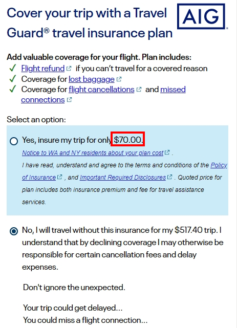 풀리펀드로 선택하면 +70불, 수하물 +40불 해서 179불로.. 거의 100불 이상 차이가 나게 되는 상황...