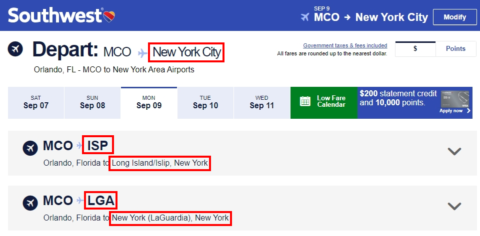 싸우스웨스트는 뉴어크에 공항이 없다..