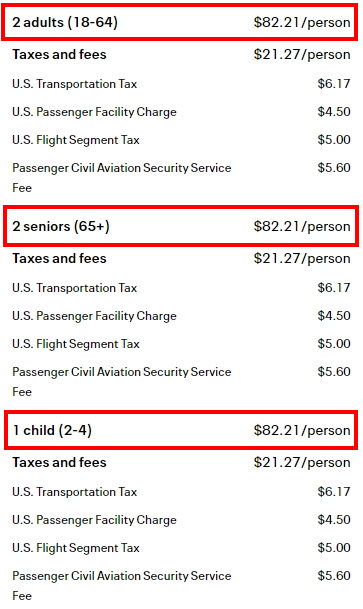 일반 성인이나.. 노인이니.. 아이나 모두 동일하게 82.21불이다..