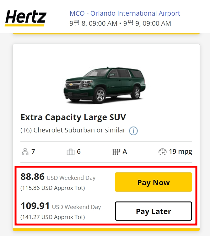 먼저 Hertz는 대충 세금 포함 110 ~ 140불 전후인데...