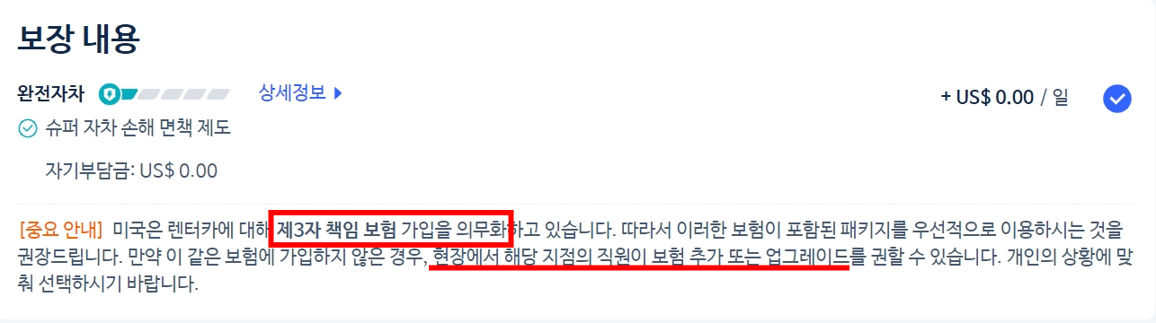 즉, 클룩에서으 Third-Party Liability가 제외된 가격이다.. 함정..