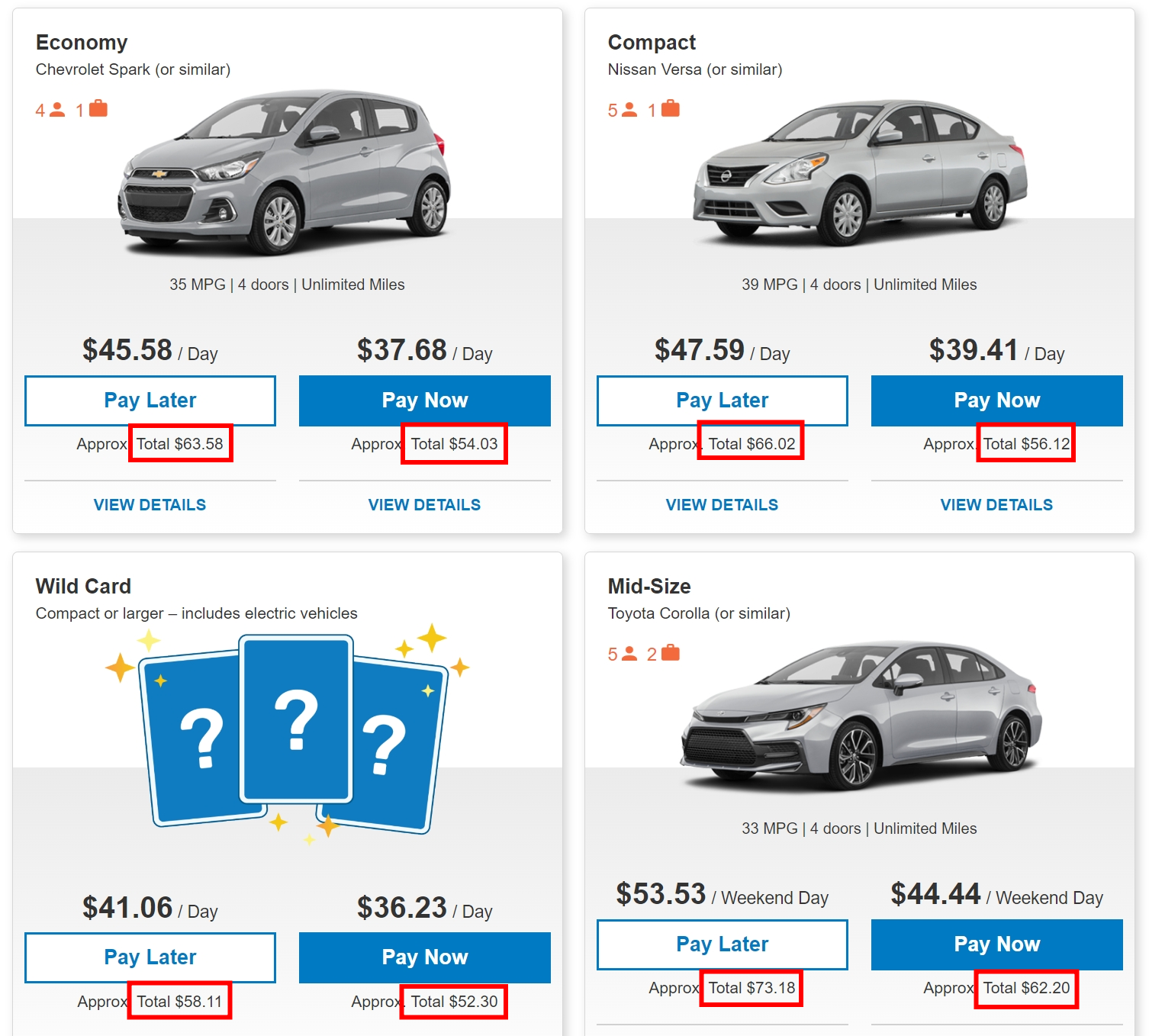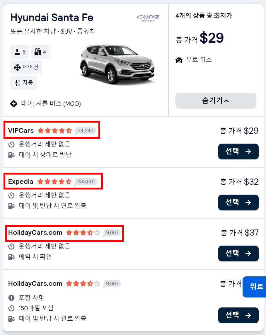 더 작은 차량이 이미 예약한 가격과 비슷한 수준이다..
