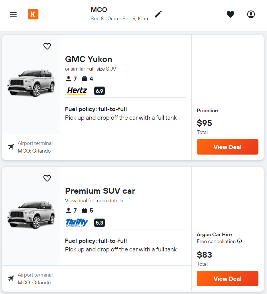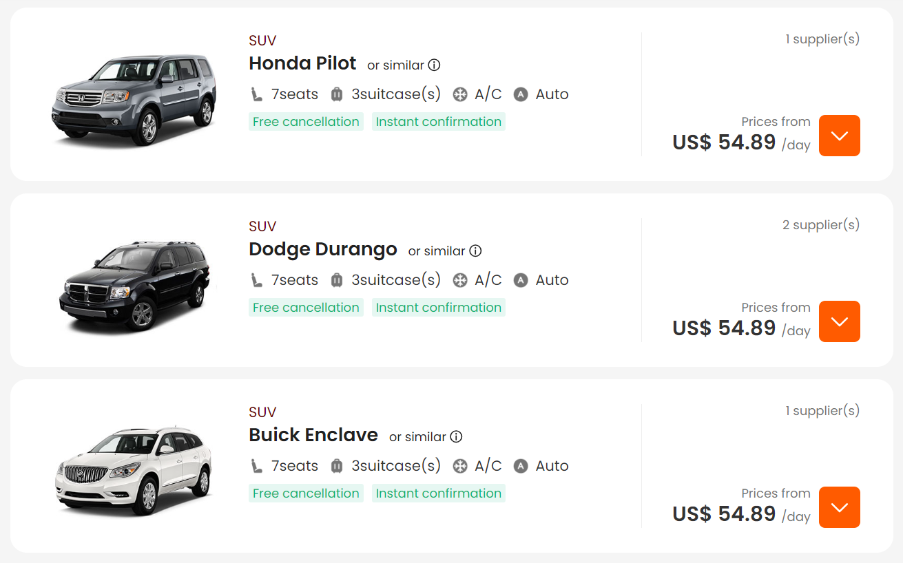 Thrifty는 일단 비슷한 조건의 차가 아예 조회가 안되는데