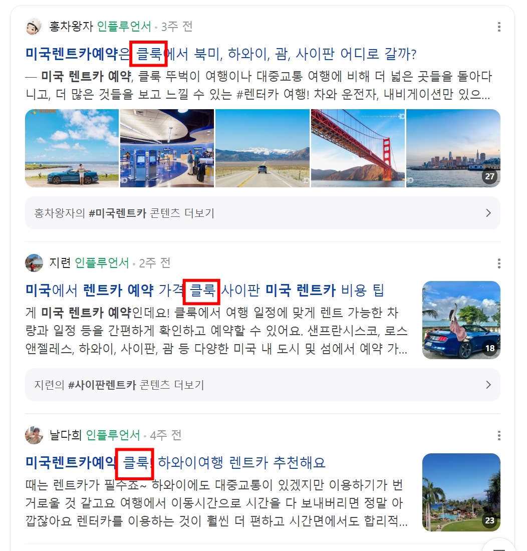 네이버에서 미국 렌트카라고 검색을 하니 죄다 클룩이 나오는게 아닌가..