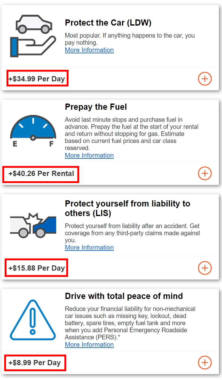Loss Damage Waiver (LDW): 차량 도난 및 손상에 대한 포괄적인 보호.