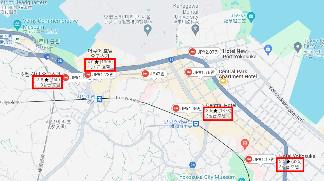 나 같은 경우는 이 케이스에는 요코스카 호텔이 조식 포함한 가격이 제일 좋아보여서 요코스카 호텔로 정했다