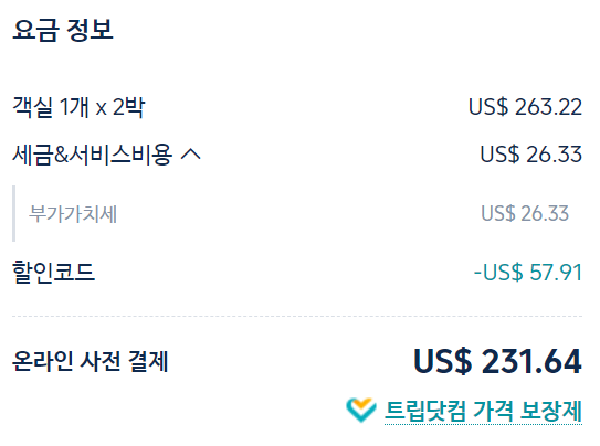 | 카드사 이벤트 적용 후 | $294.86 | - | - |