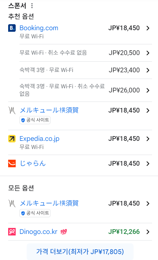 | 야후트래블 | 트립닷컴 | 부킹닷컴 | 라쿠텐트래블 | |